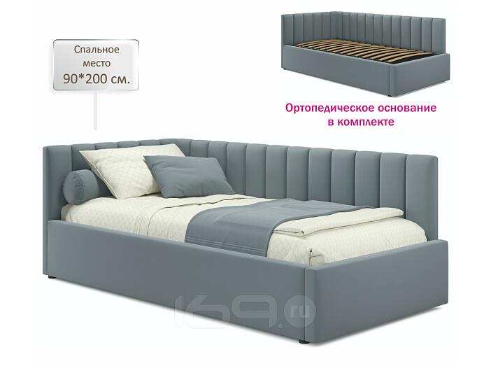 Кровать Milena с матрасом велюр серый без П/М 900x2000, изголовье мягкое