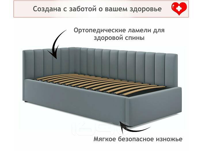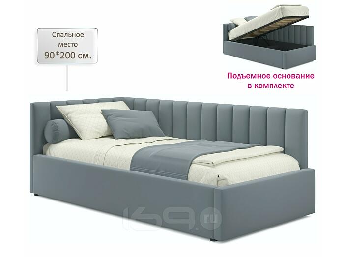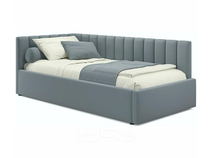 Кровать Milena с матрасом велюр серый С П/М 900x2000, ортопедическое основание, изголовье мягкое