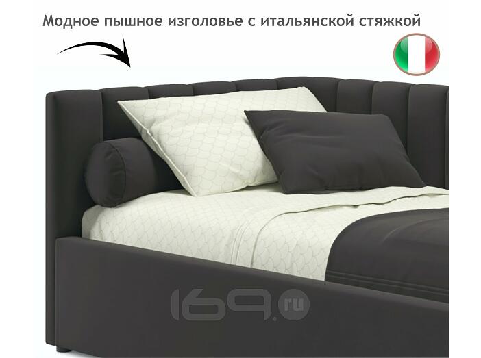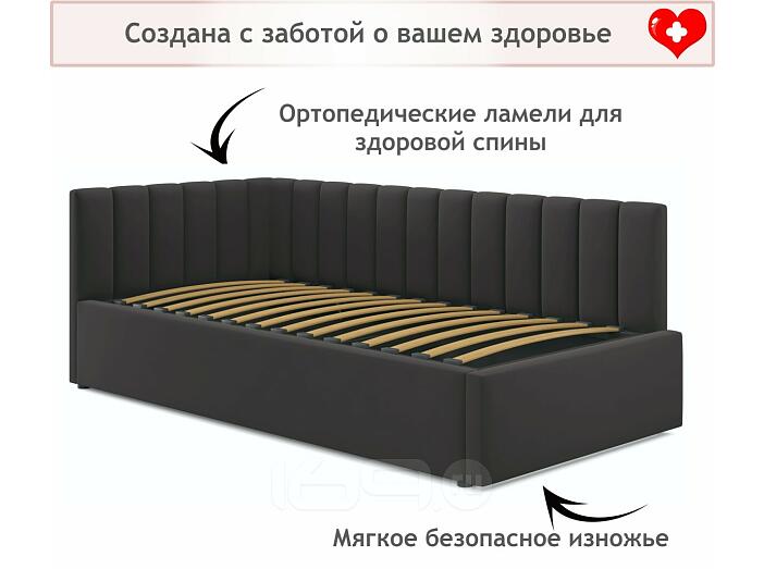 Кровать Milena с матрасом велюр шоколад С П/М 900x2000, ортопедическое основание, изголовье мягкое