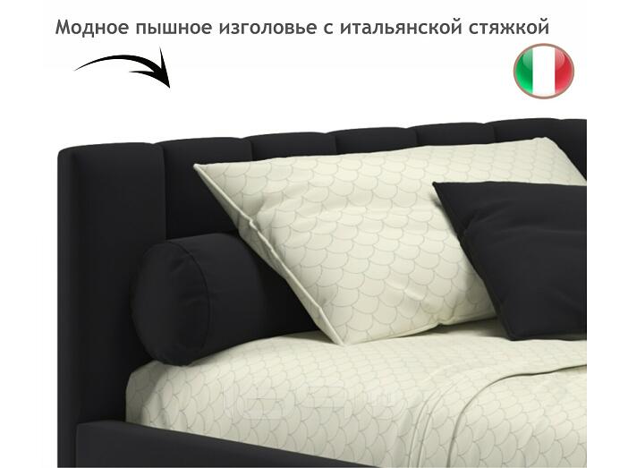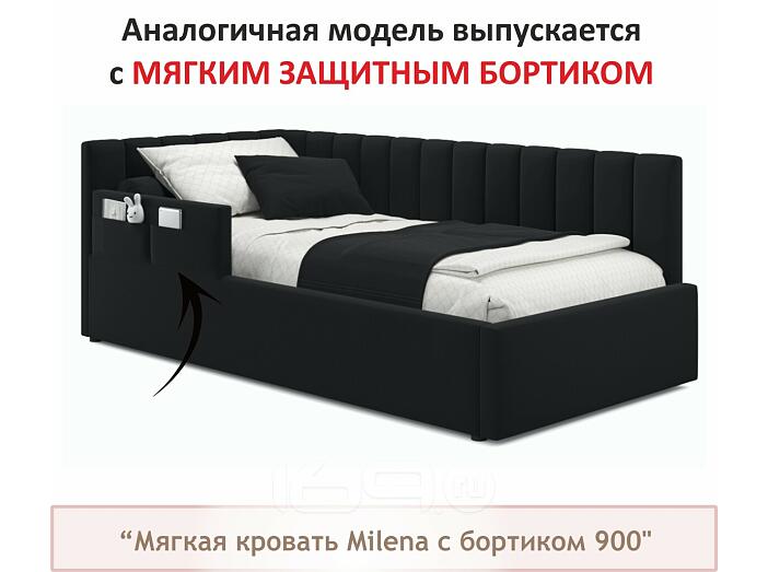 Кровать Milena с матрасом велюр темный без П/М 900x2000, изголовье мягкое