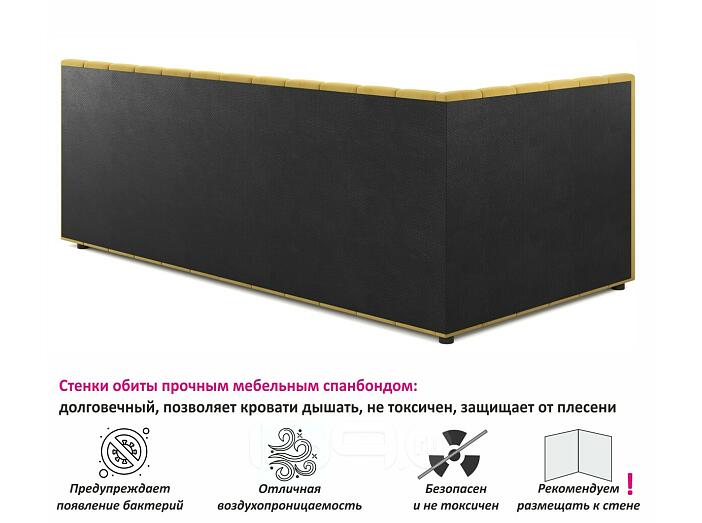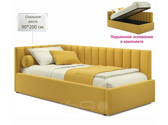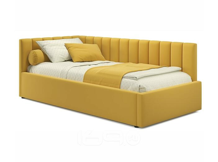 Кровать Milena с матрасом велюр жёлтый С П/М 900x2000, ортопедическое основание, изголовье мягкое