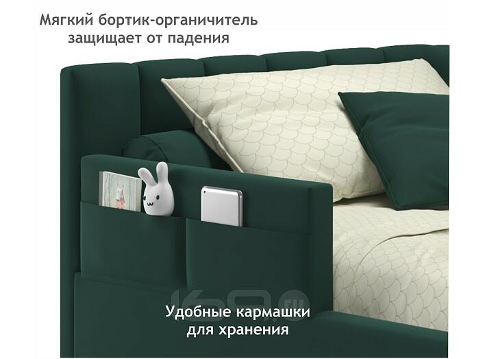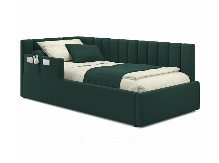 Кровать Milena с матрасом велюр изумруд без П/М 900x2000, ортопедическое основание, изголовье мягкое