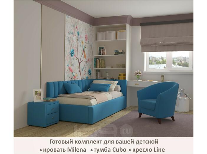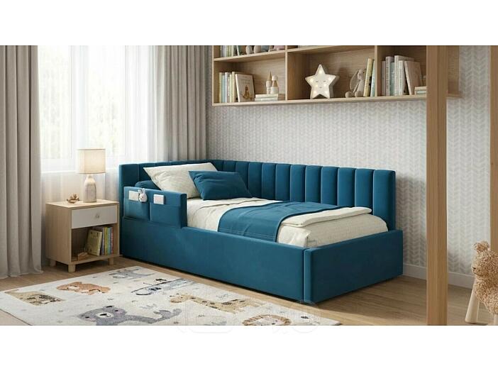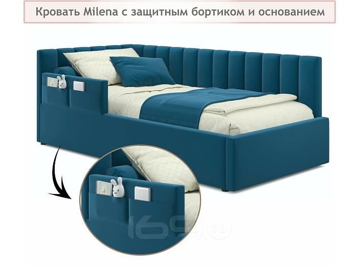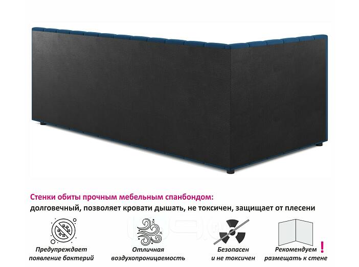 Кровать Milena с матрасом велюр синий без П/М 900x2000, ортопедическое основание, изголовье мягкое