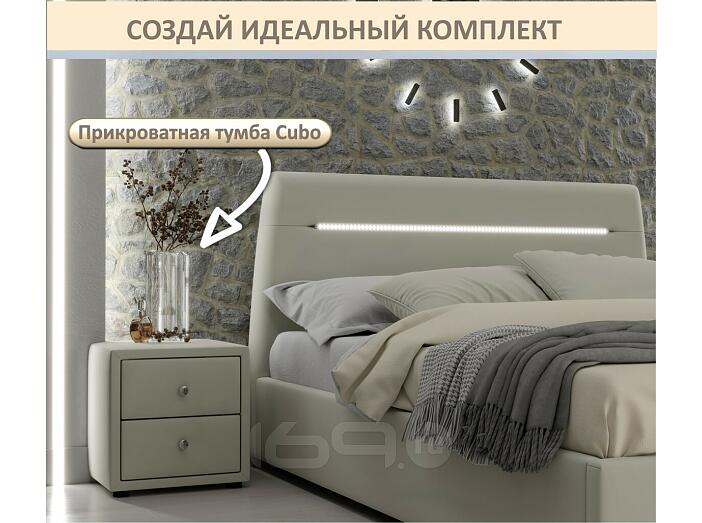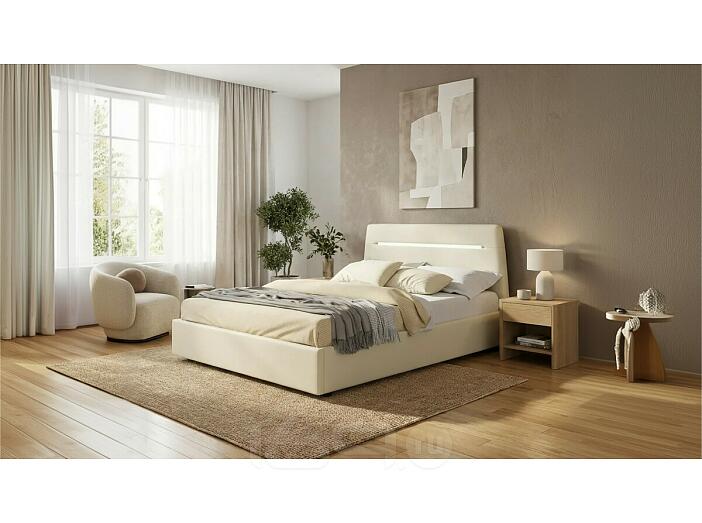 Кровать Neo с матрасом велюр бежевый С П/М 1600x2000, ортопедическое основание, изголовье мягкое