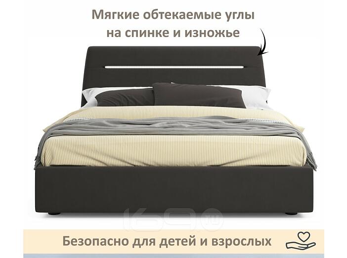 Кровать Neo с матрасом велюр шоколад С П/М 1600x2000, ортопедическое основание, изголовье мягкое
