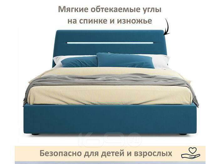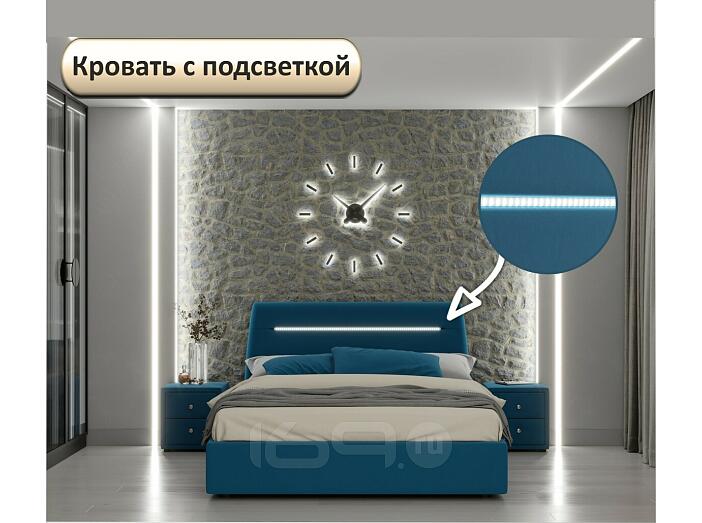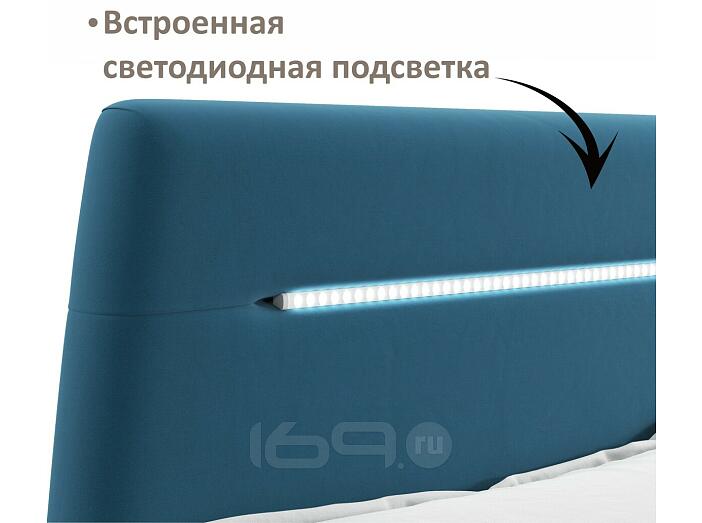Кровать Neo с матрасом велюр синий С П/М 1600x2000, ортопедическое основание, изголовье мягкое