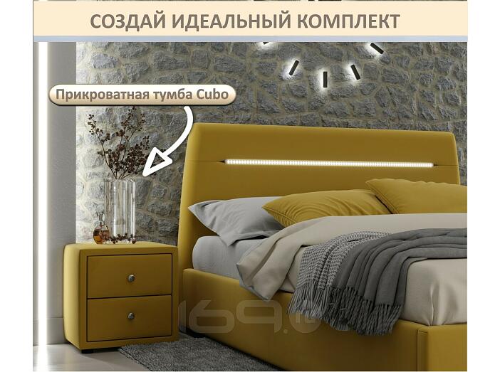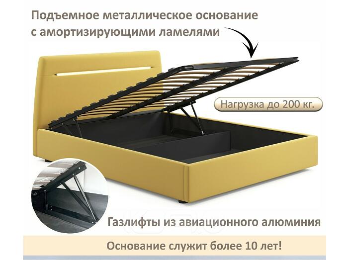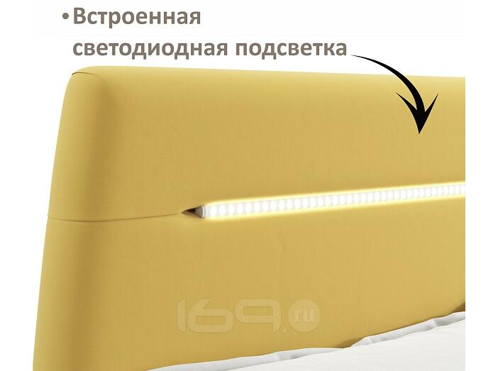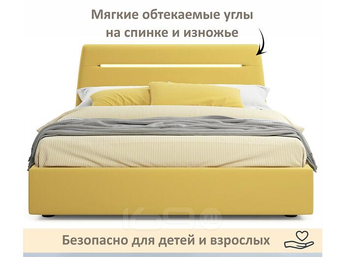 Кровать Neo с матрасом велюр желтый С П/М 1600x2000, ортопедическое основание, изголовье мягкое