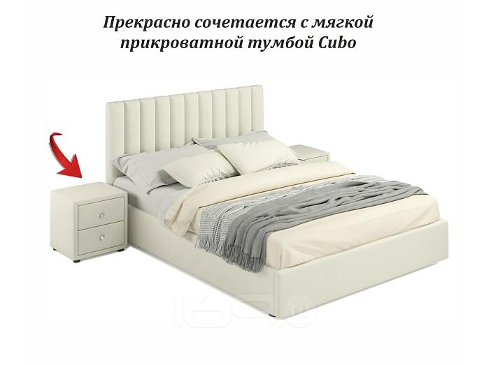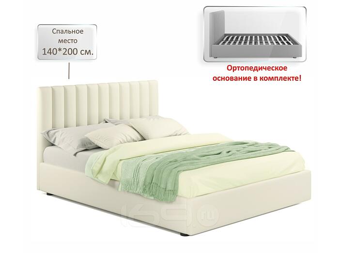 Кровать Olivia с матрасом велюр бежевый без П/М 1400x2000, изголовье мягкое