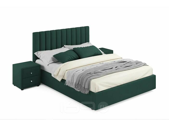 Кровать Olivia с матрасом велюр изумруд без П/М 1400x2000, изголовье мягкое