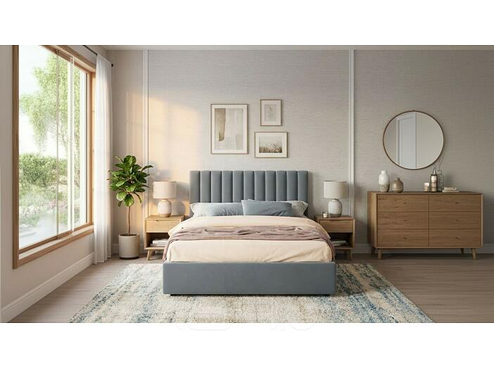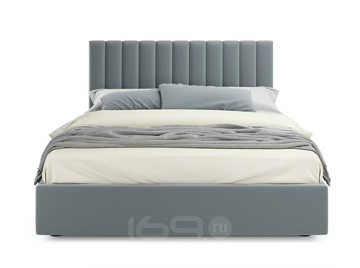 Кровать Olivia с матрасом велюр серый без П/М 1400x2000, изголовье мягкое
