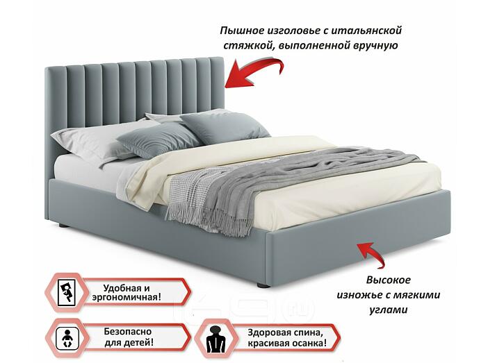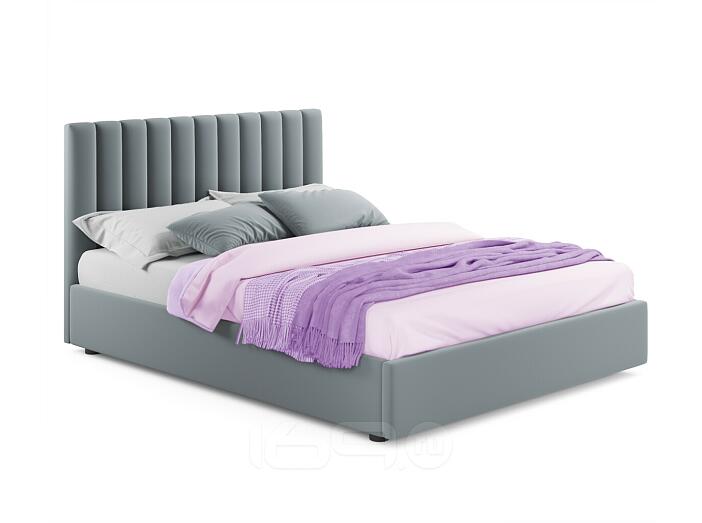 Кровать Olivia с матрасом велюр серый С П/М 1400x2000, ортопедическое основание, изголовье мягкое