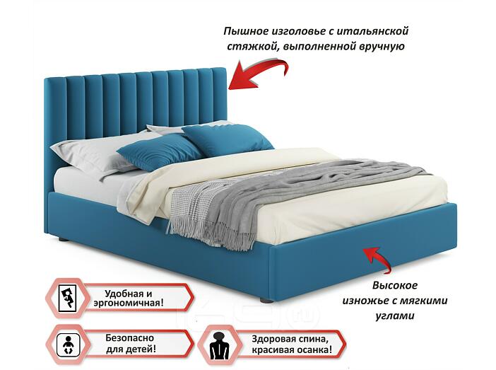 Кровать Olivia с матрасом велюр синий без П/М 1400x2000, изголовье мягкое