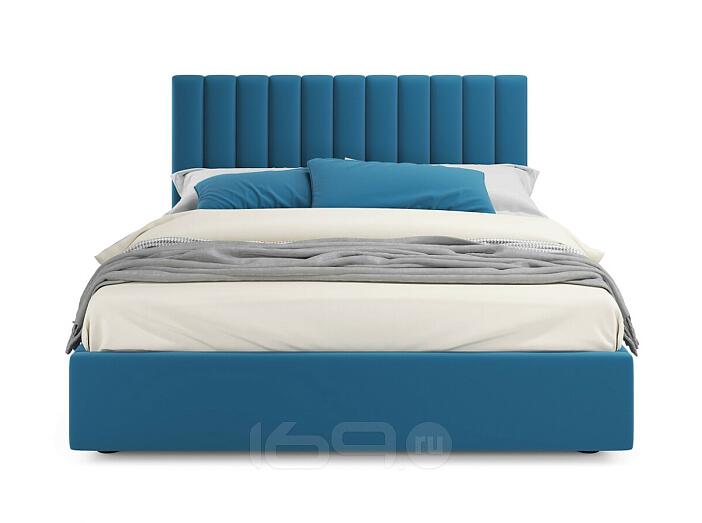 Кровать Olivia с матрасом велюр синий С П/М 1400x2000, ортопедическое основание, изголовье мягкое