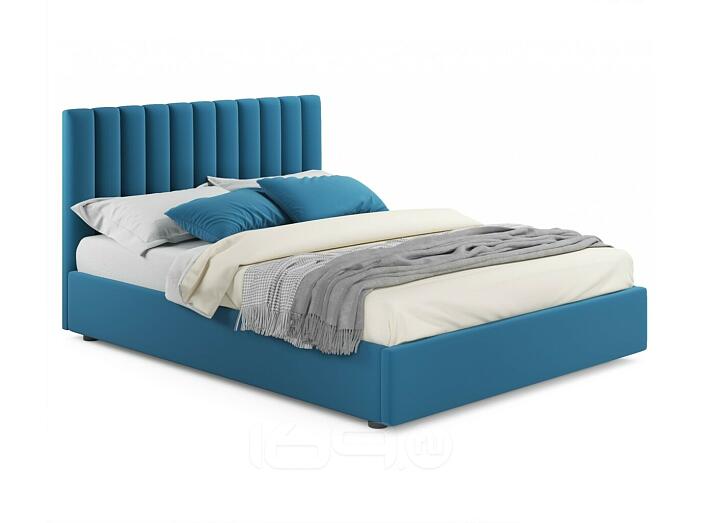 Кровать Olivia с матрасом велюр синий С П/М 1600x2000, ортопедическое основание, изголовье мягкое