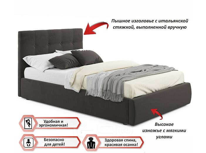 Кровать Selesta с матрасом велюр шоколад без П/М 1200x2000, изголовье мягкое