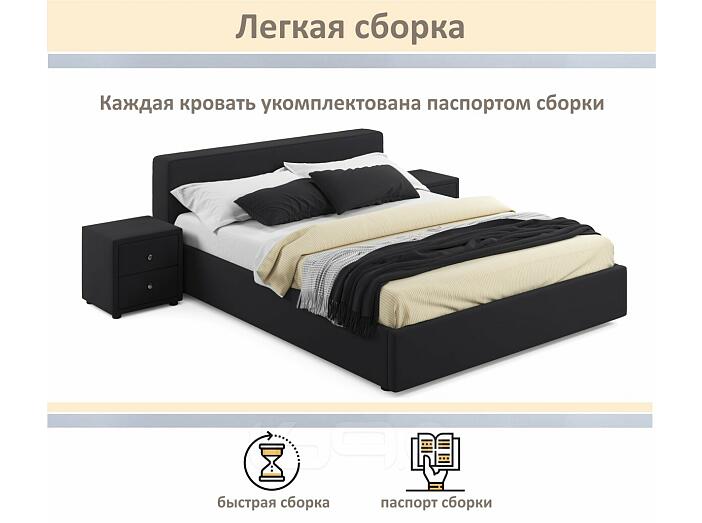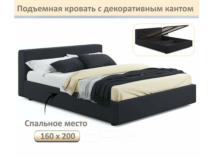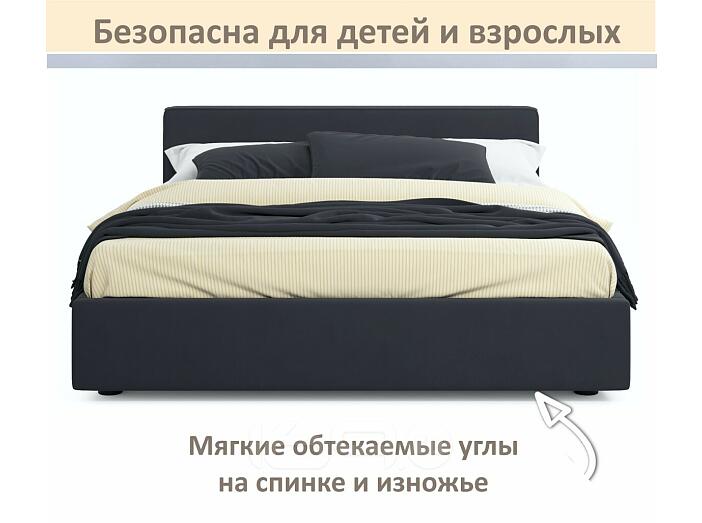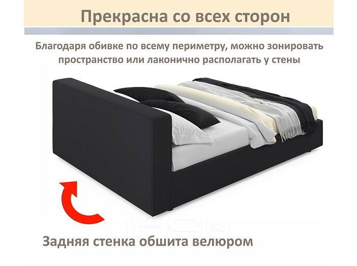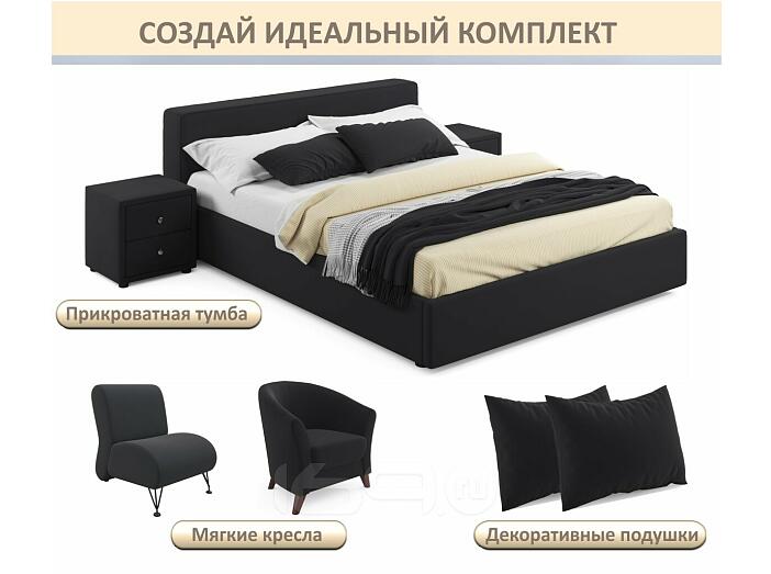 Кровать Skandi с матрасом велюр черный С П/М 1600x2000, ортопедическое основание, изголовье мягкое