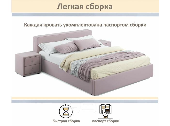 Кровать Skandi с матрасом велюр лиловый С П/М 1600x2000, ортопедическое основание, изголовье мягкое