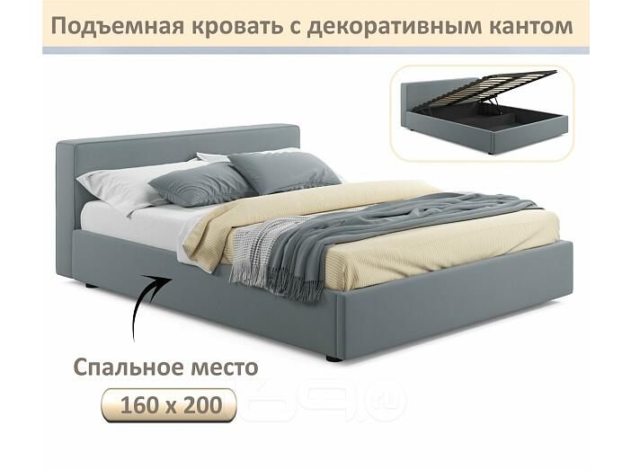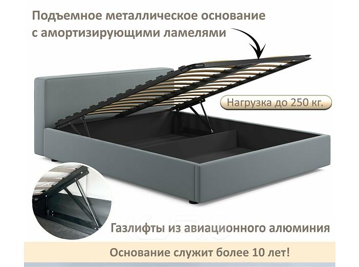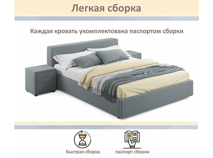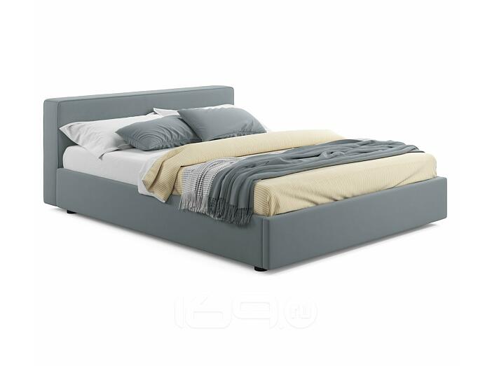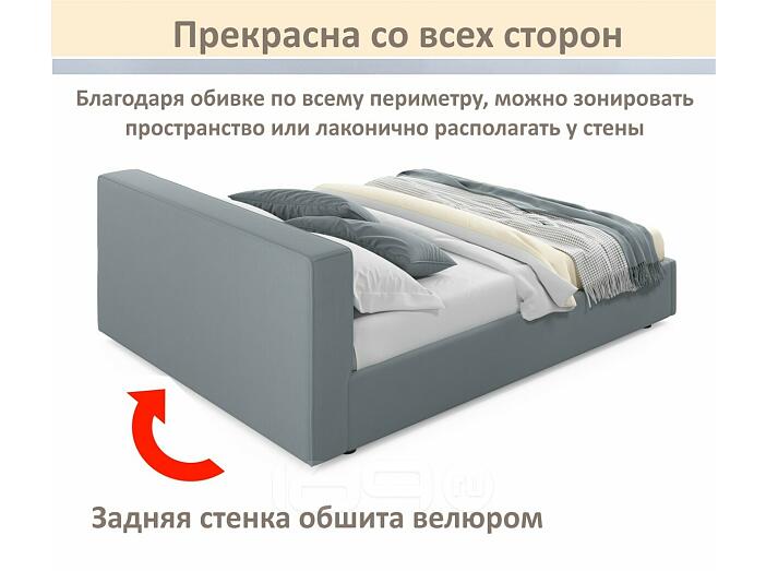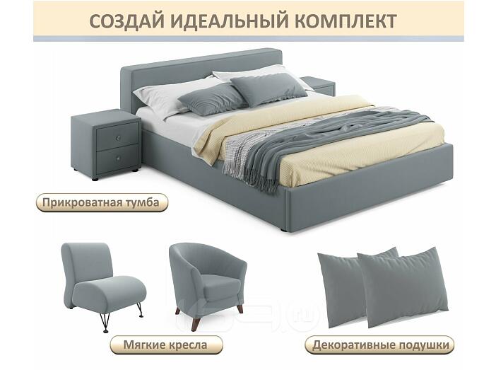 Кровать Skandi с матрасом велюр серый С П/М 1600x2000, ортопедическое основание, изголовье мягкое