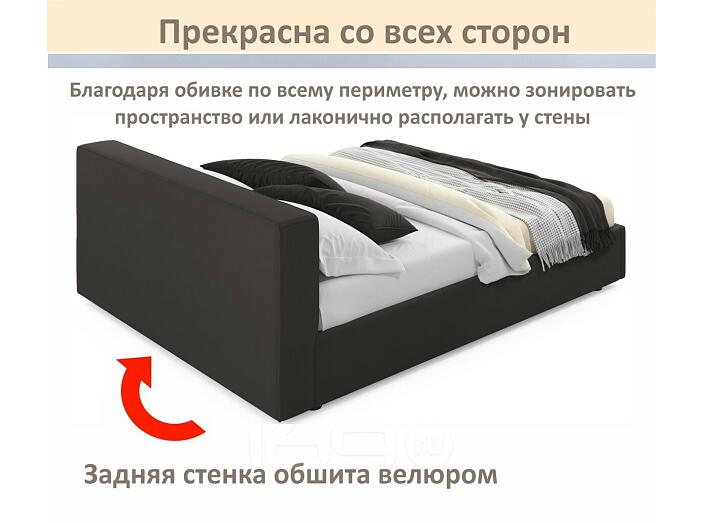 Кровать Skandi с матрасом велюр шоколад С П/М 1600x2000, ортопедическое основание, изголовье мягкое