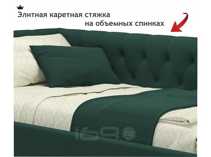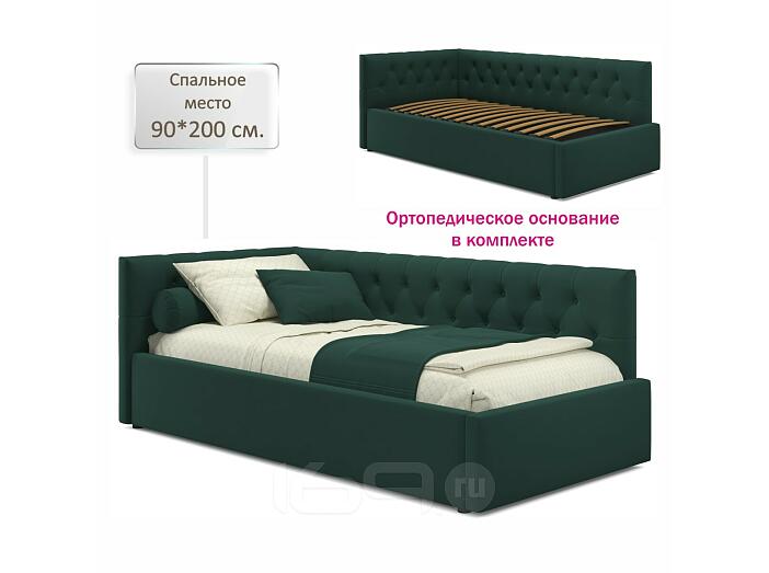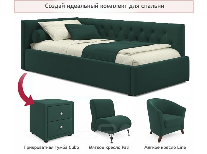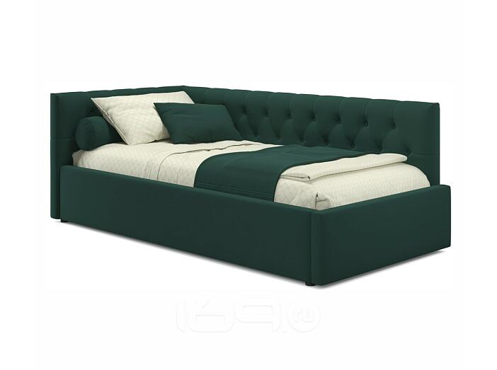 Кровать Afelia с матрасом велюр изумруд без П/М 900x2000, изголовье мягкое