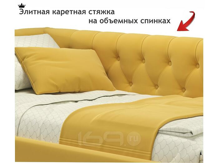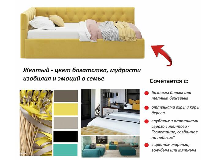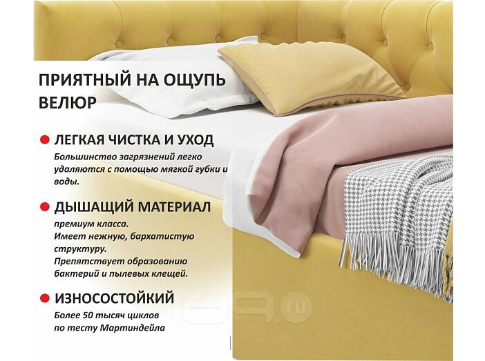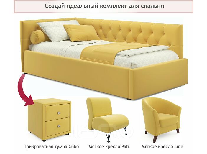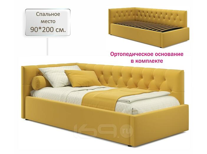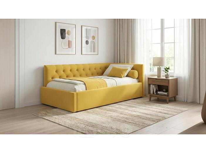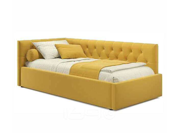 Кровать Afelia с матрасом велюр желтый без П/М 900x2000, изголовье мягкое