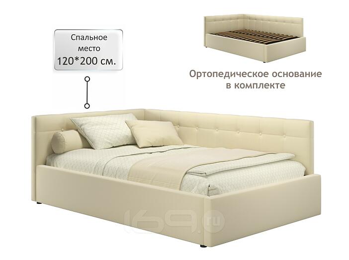 Кровать Bonna с матрасом велюр бежевый без П/М 1200x2000, изголовье мягкое