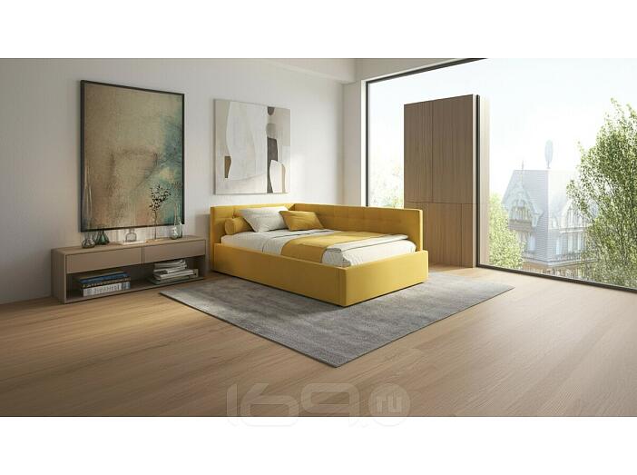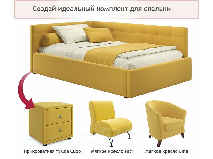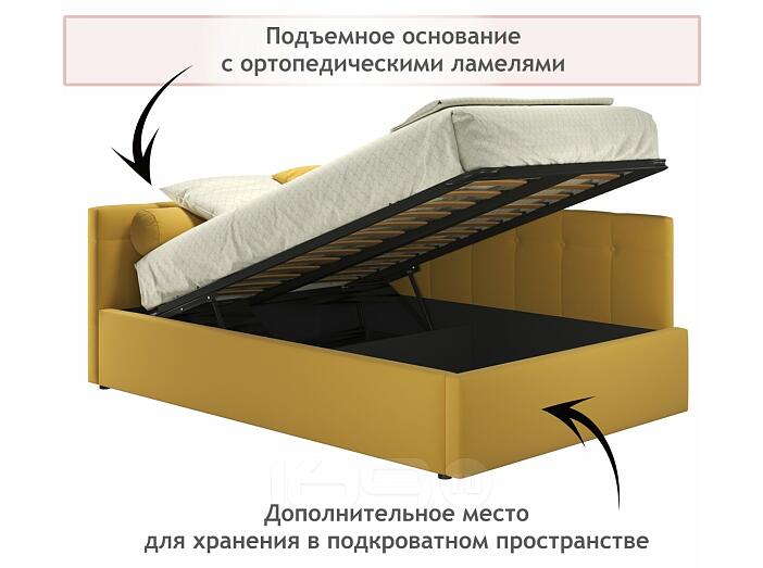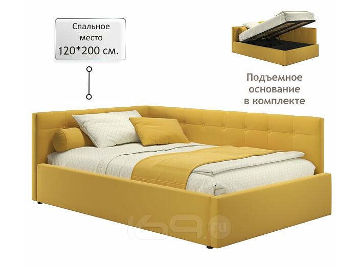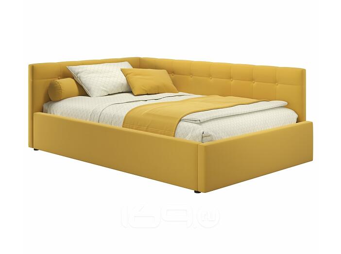 Кровать Bonna с матрасом велюр желтый С П/М 1200x2000, ортопедическое основание, изголовье мягкое