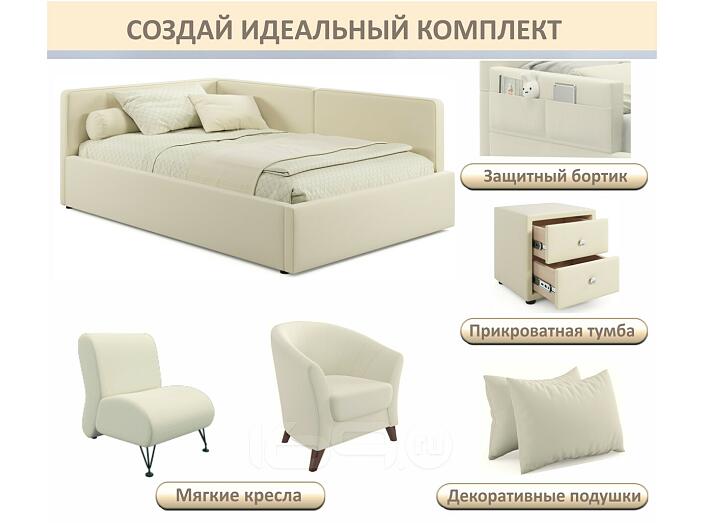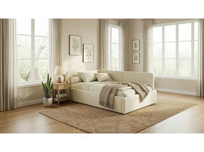 Кровать Kapri с матрасом велюр бежевый С П/М 1200x2000, ортопедическое основание, изголовье мягкое