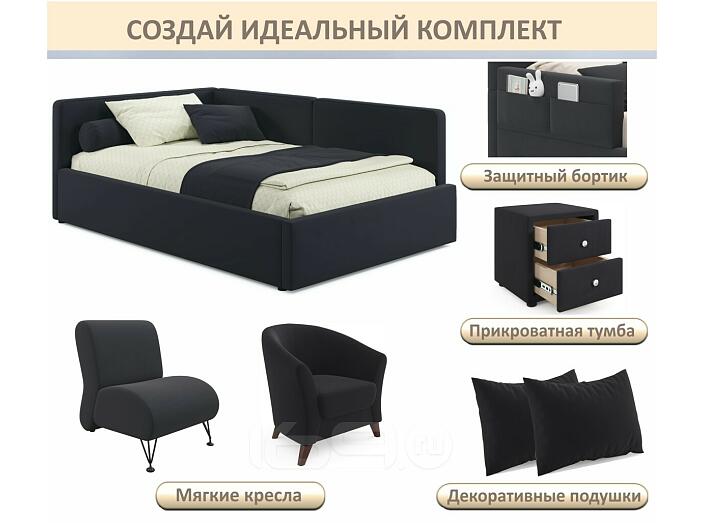 Кровать Kapri с матрасом велюр черный С П/М 1200x2000, ортопедическое основание, изголовье мягкое