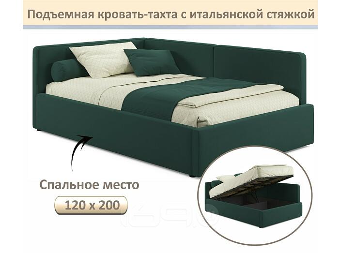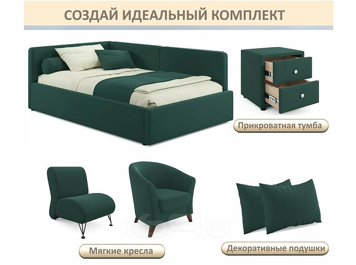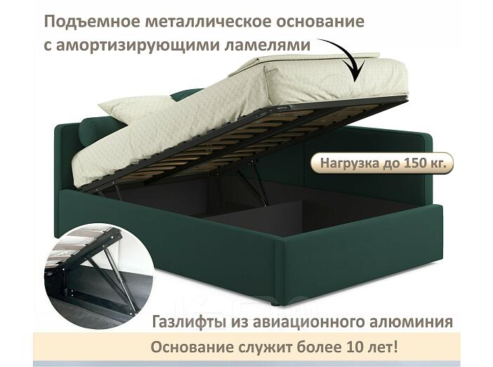 Кровать Kapri с матрасом велюр изумруд С П/М 1200x2000, ортопедическое основание, изголовье мягкое