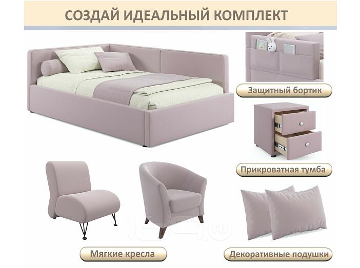 Кровать Kapri с матрасом велюр лиловый С П/М 1200x2000, ортопедическое основание, изголовье мягкое