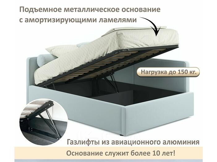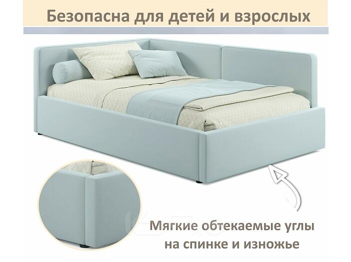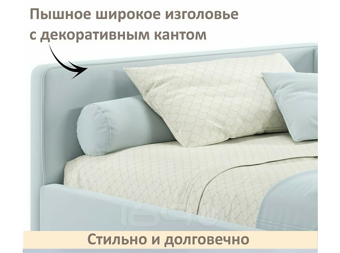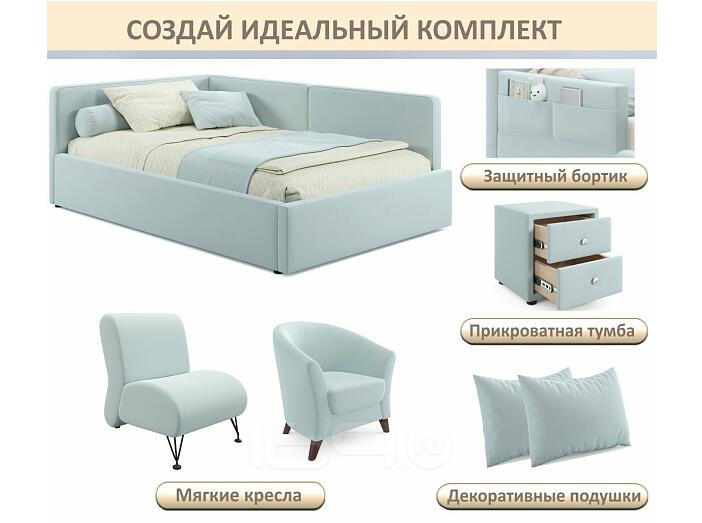 Кровать Kapri с матрасом велюр мята пастель С П/М 1200x2000, ортопедическое основание, изголовье мягкое