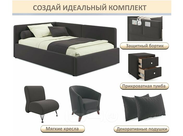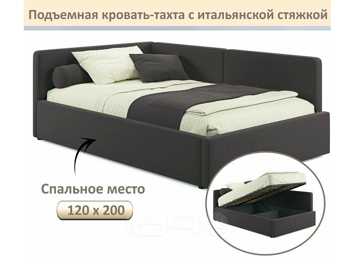 Кровать Kapri с матрасом велюр шоколад С П/М 1200x2000, ортопедическое основание, изголовье мягкое