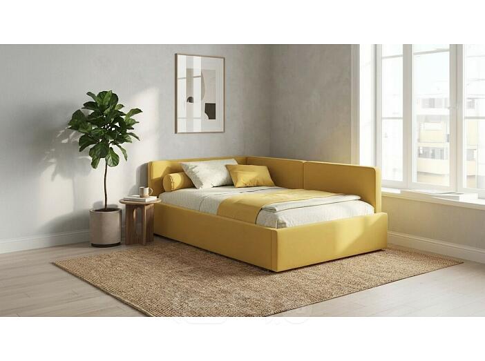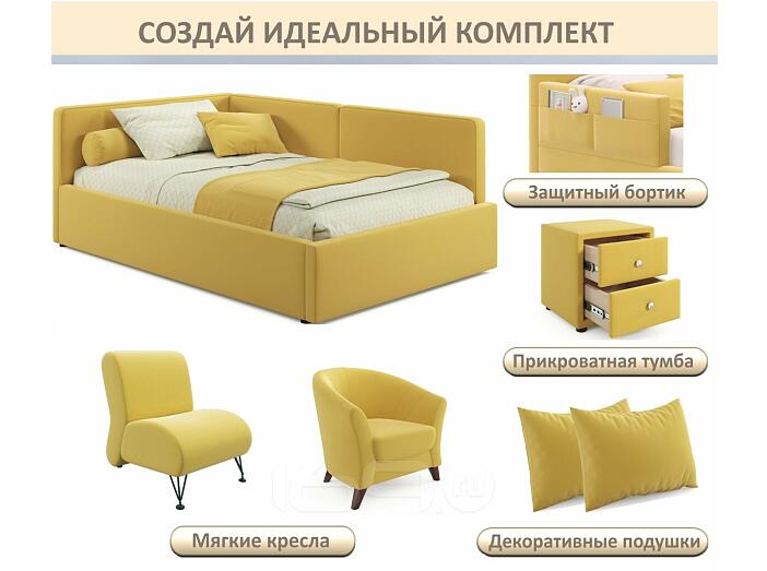 Кровать Kapri с матрасом велюр желтый С П/М 1200x2000, ортопедическое основание, изголовье мягкое