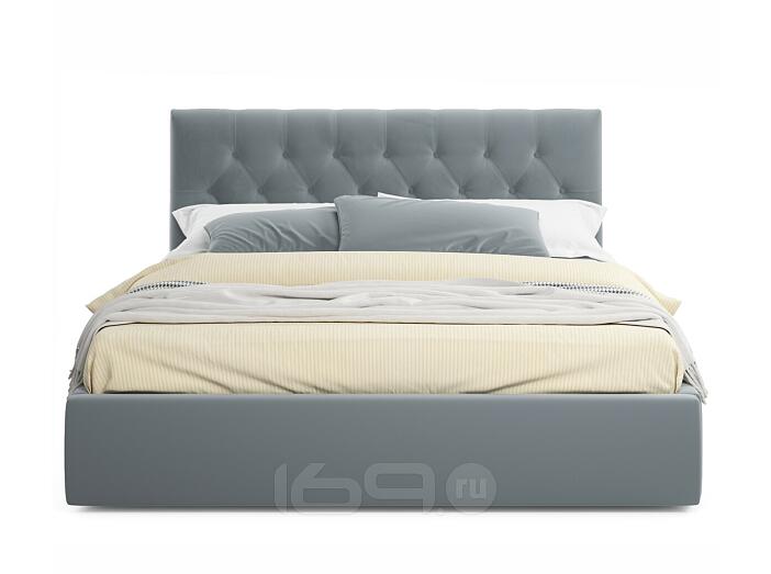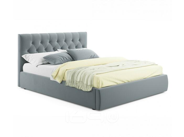 Кровать Verona с матрасом велюр серый С П/М 1400x2000, ортопедическое основание, изголовье мягкое