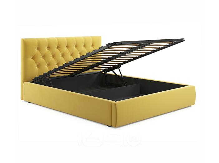 Кровать Verona с матрасом велюр жёлтый С П/М 1400x2000, ортопедическое основание, изголовье мягкое