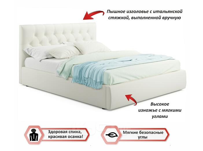 Кровать Verona с матрасом велюр бежевый С П/М 1600x2000, ортопедическое основание, изголовье мягкое