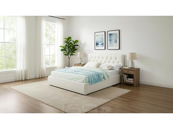 Кровать Verona с матрасом велюр бежевый без П/М 1600x2000, изголовье мягкое