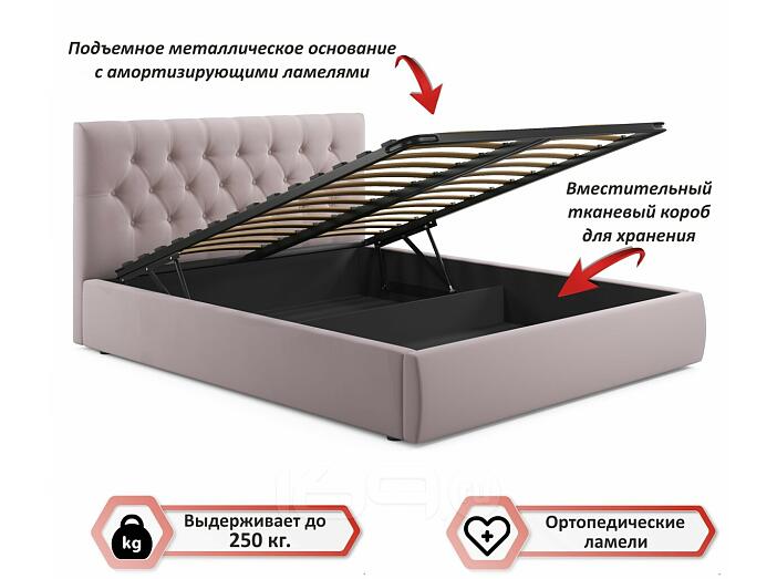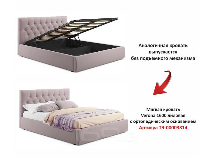 Кровать Verona с матрасом велюр лиловый С П/М 1600x2000, ортопедическое основание, изголовье мягкое