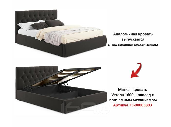 Кровать Verona с матрасом велюр шоколадный без П/М 1600x2000, изголовье мягкое