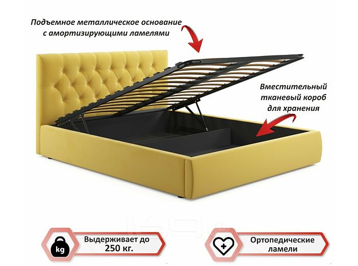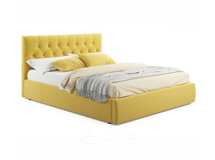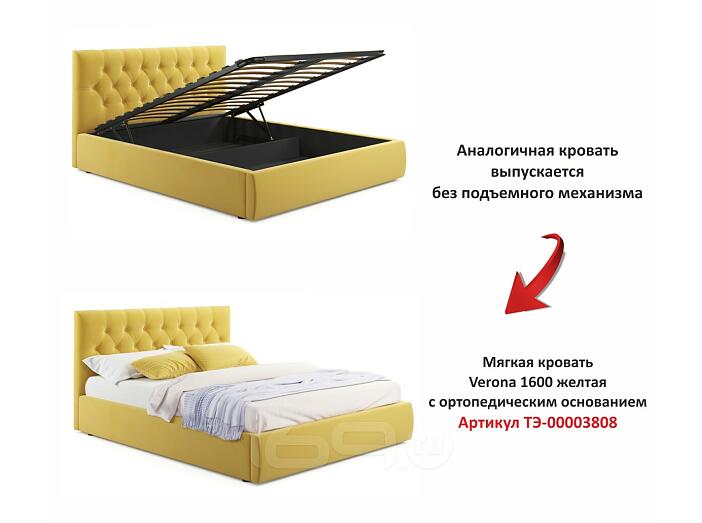 Кровать Verona с матрасом велюр жёлтый С П/М 1600x2000, ортопедическое основание, изголовье мягкое