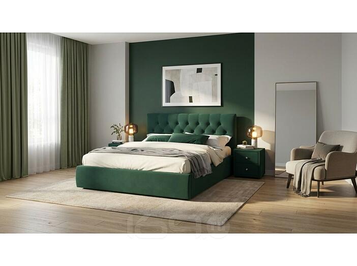 Кровать Verona с матрасом велюр изумруд без П/М 1800x2000, изголовье мягкое