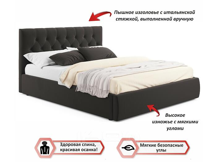 Кровать Verona с матрасом велюр шоколадный без П/М 1800x2000, изголовье мягкое