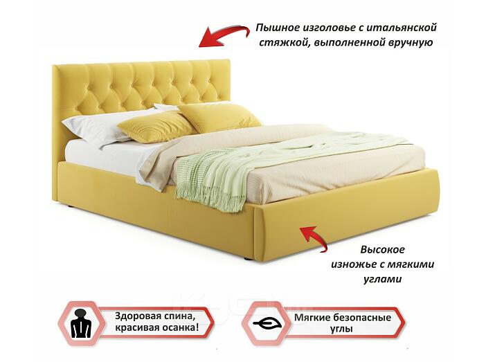 Кровать Verona с матрасом велюр жёлтый без П/М 1800x2000, изголовье мягкое