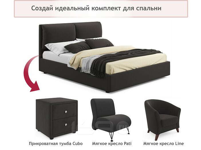 Кровать Vita с матрасом велюр шоколад без П/М 1400x2000, изголовье мягкое