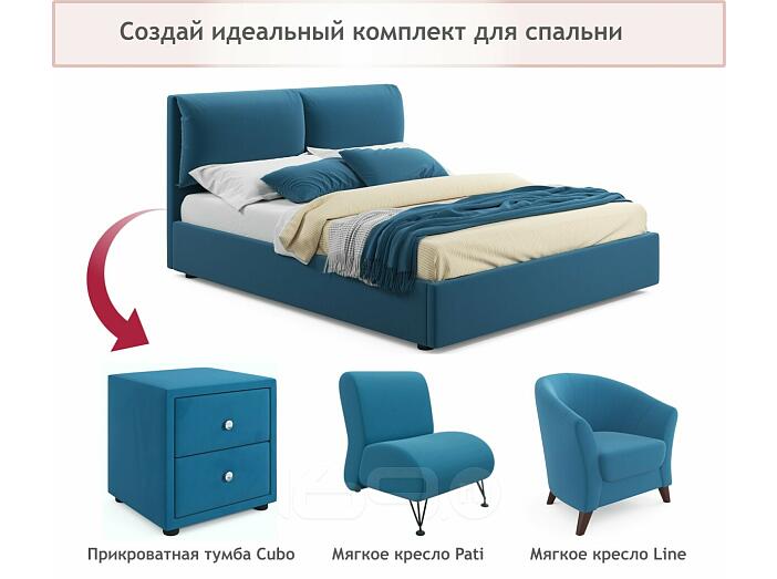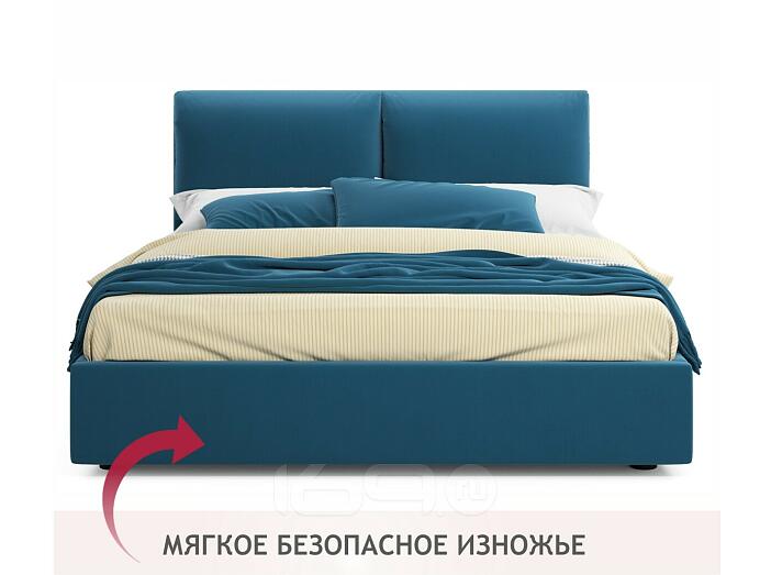 Кровать Vita с матрасом велюр синий С П/М 1400x2000, ортопедическое основание, изголовье мягкое