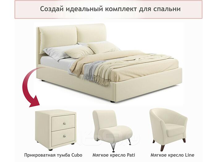 Кровать Vita с матрасом велюр бежевый без П/М 1800x2000, изголовье мягкое