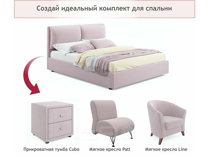 Кровать Vita с матрасом велюр лиловый без П/М 1800x2000, изголовье мягкое