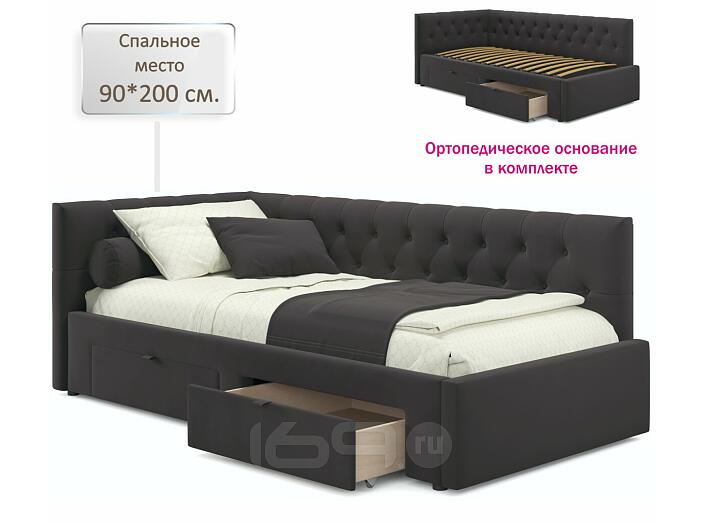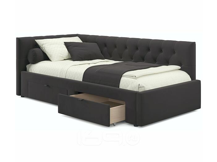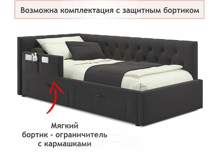 Кровать Afelia с матрасом велюр шоколад без П/М 900x2000, изголовье мягкое