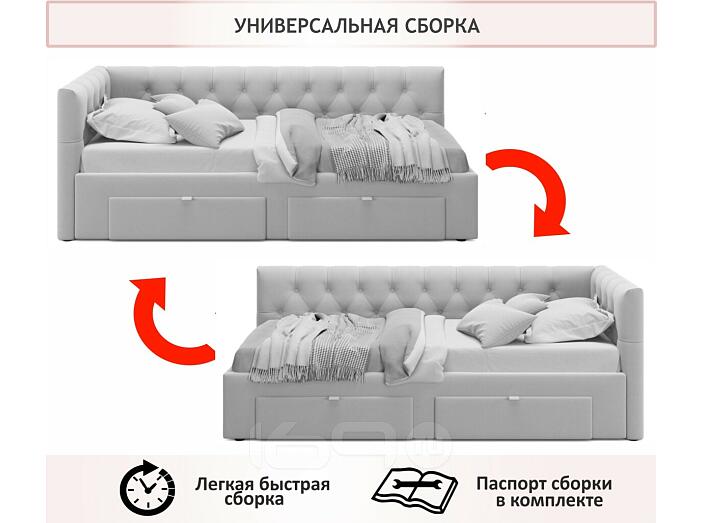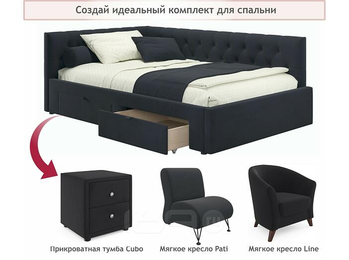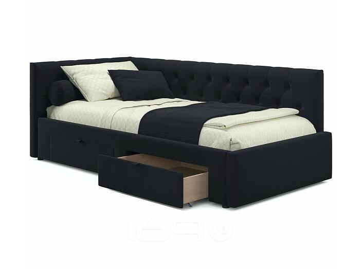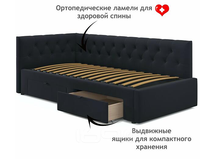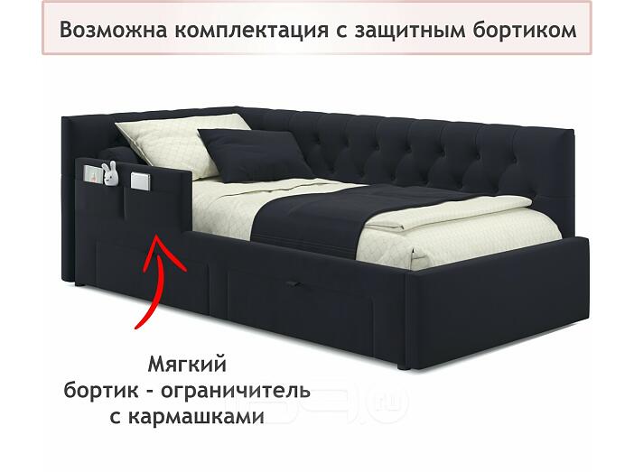 Кровать Afelia с матрасом велюр темный без П/М 900x2000, изголовье мягкое